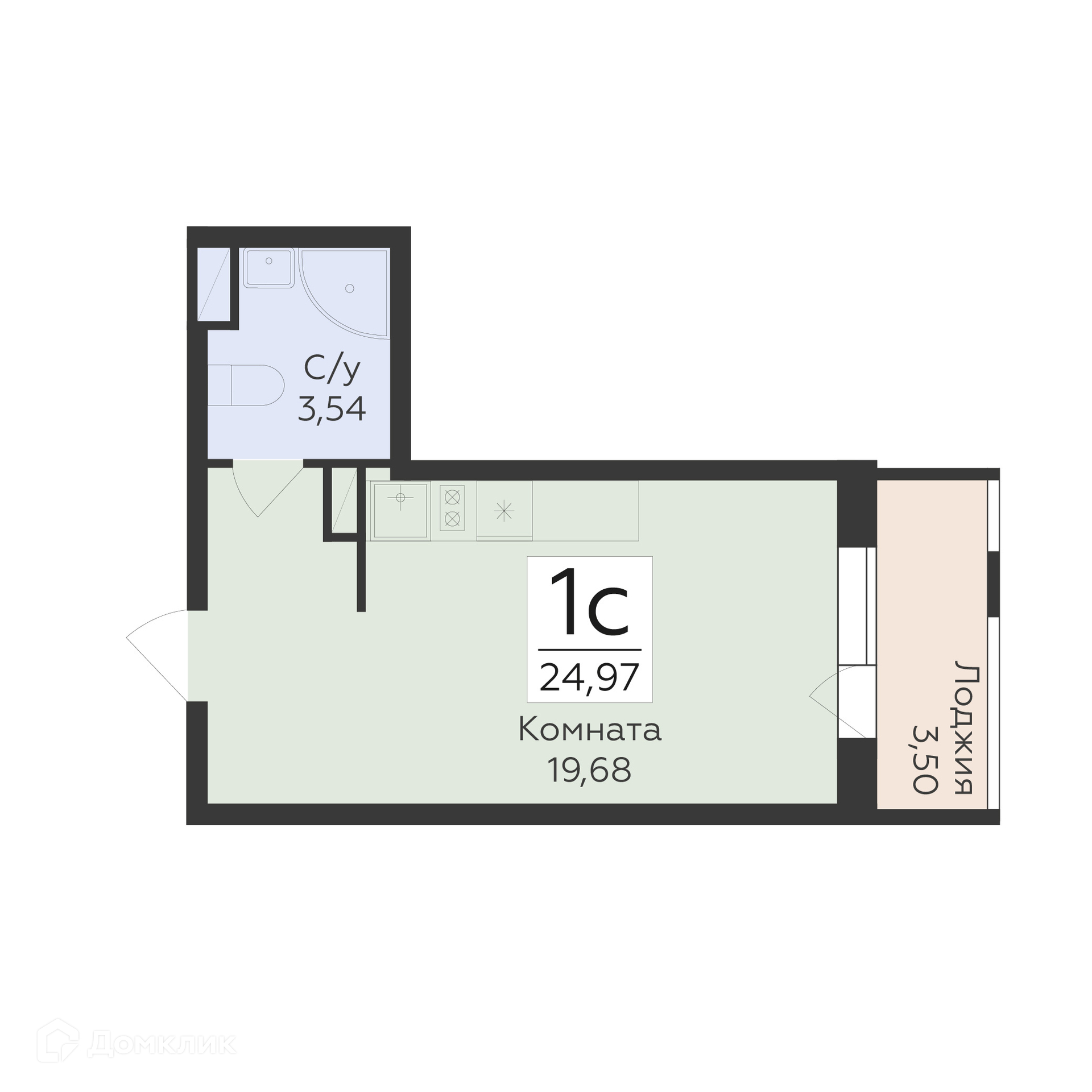- Общая площадь: 24.97 м²