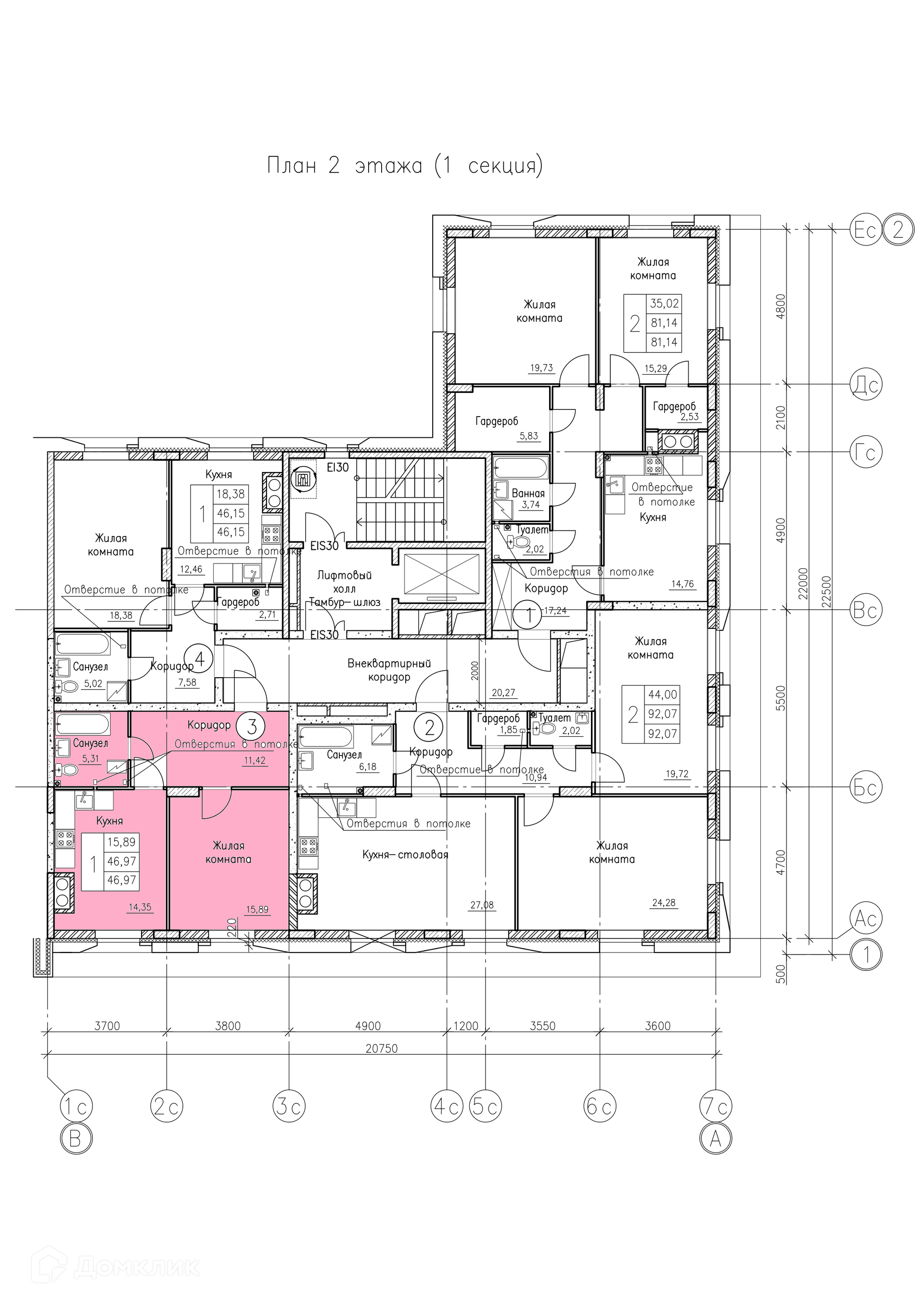 Площади квартир