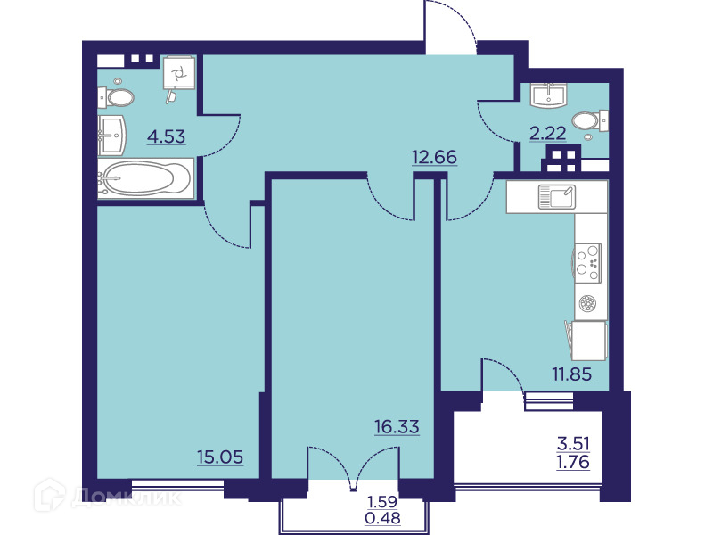 - ✅ Кухня: - м² — место для кулинарных шедевров.