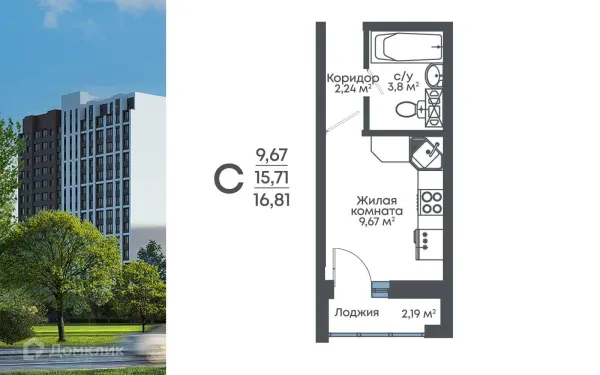 1 комн. квартира в Воронеже в ипотеку от 16 838 руб/месяц