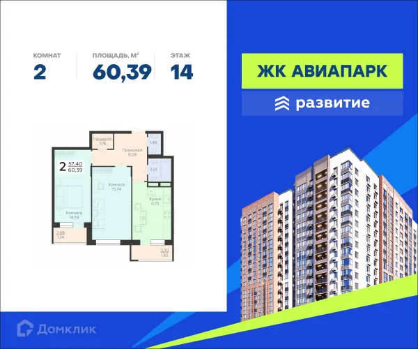 2 комн. квартира в Воронеже в ипотеку от 46 313 руб/месяц