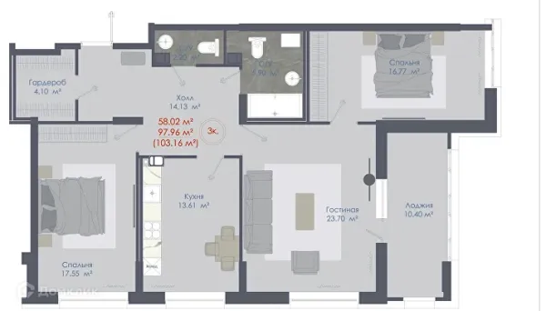 3 комн. квартира в Воронеже в ипотеку от 80 705 руб/месяц