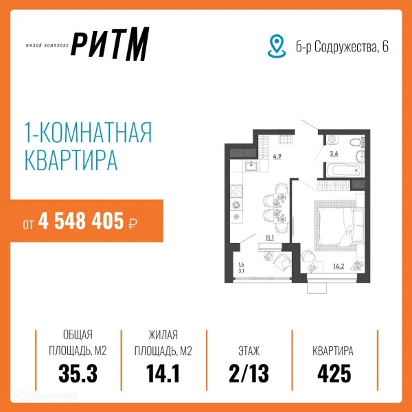 1 комн. квартира в Воронеже в ипотеку от 37 911 руб/месяц