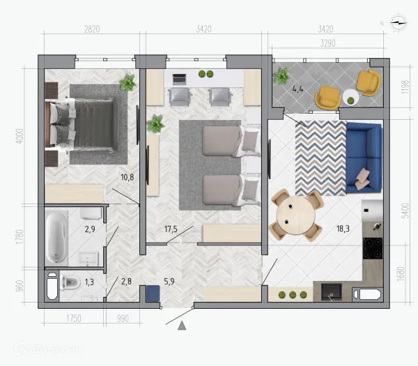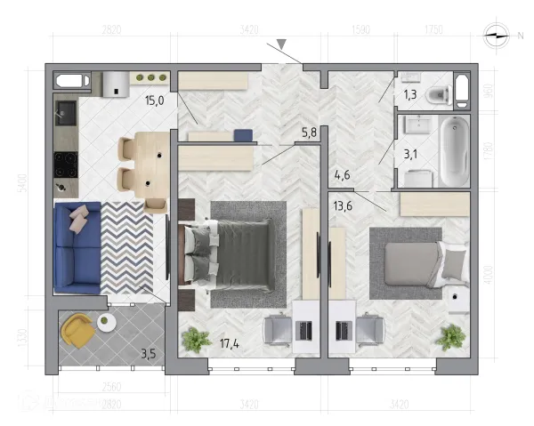 2 комн. квартира в Воронеже в ипотеку от 56 849 руб/месяц