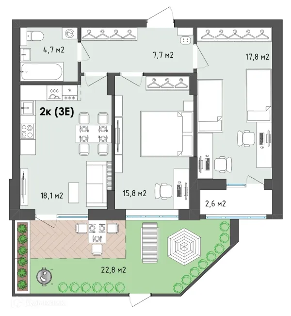 2 комн. квартира в Воронеже в ипотеку от 77 490 руб/месяц