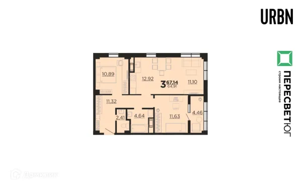 3 комн. квартира в Волгограде в ипотеку от 66 969 руб/месяц