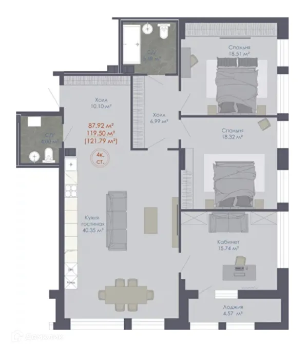 4 комн. квартира в Воронеже в ипотеку от 87 996 руб/месяц