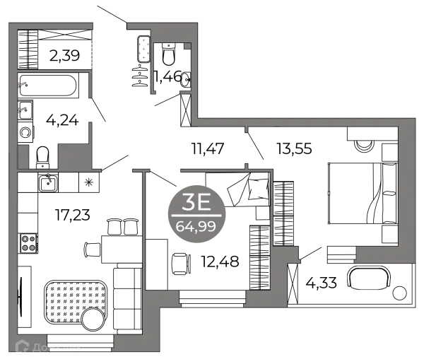 2 комн. квартира в Воронеже в ипотеку от 63 999 руб/месяц