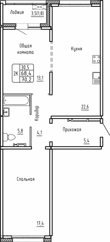 2 комн. квартира в Новосибирске в ипотеку от 71 686 руб/месяц