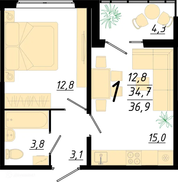 1 комн. квартира в Воронеже в ипотеку от 34 765 руб/месяц