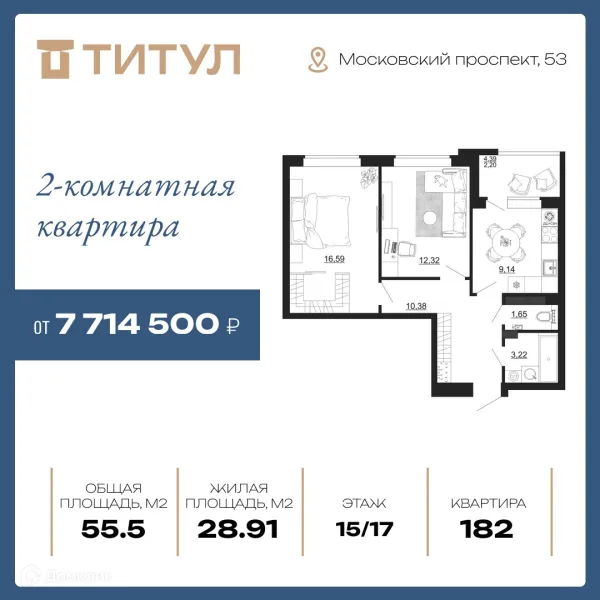 2 комн. квартира в Воронеже в ипотеку от 51 599 руб/месяц