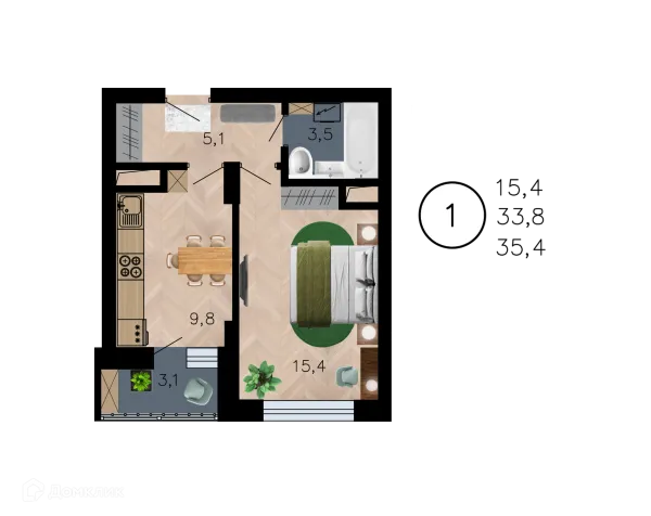 1 комн. квартира в Воронеже в ипотеку от 52 126 руб/месяц
