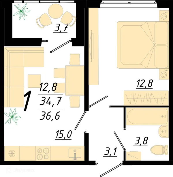 1 комн. квартира в Воронеже в ипотеку от 31 004 руб/месяц