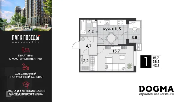 1 комн. квартира в Краснодаре в ипотеку от 52 515 руб/месяц