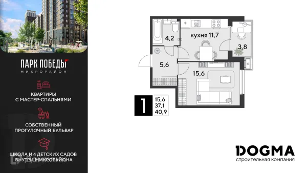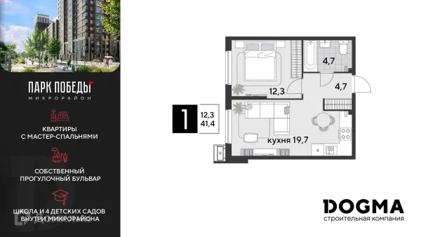 1 комн. квартира в Краснодаре в ипотеку от 46 681 руб/месяц