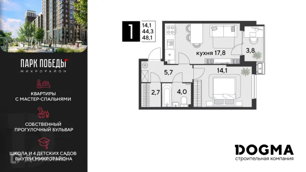 1 комн. квартира в Краснодаре в ипотеку от 48 894 руб/месяц