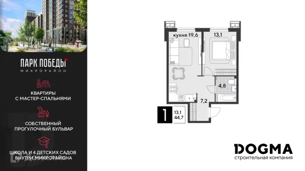 1 комн. квартира в Краснодаре в ипотеку от 45 222 руб/месяц