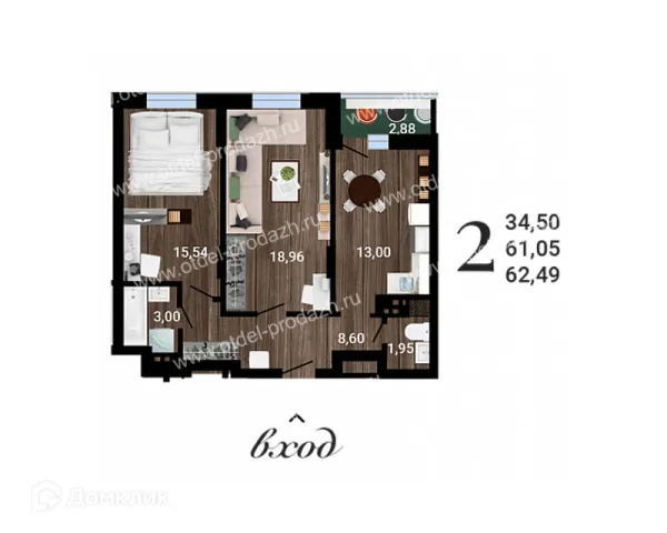 2 комн. квартира в Воронеже в ипотеку от 58 616 руб/месяц