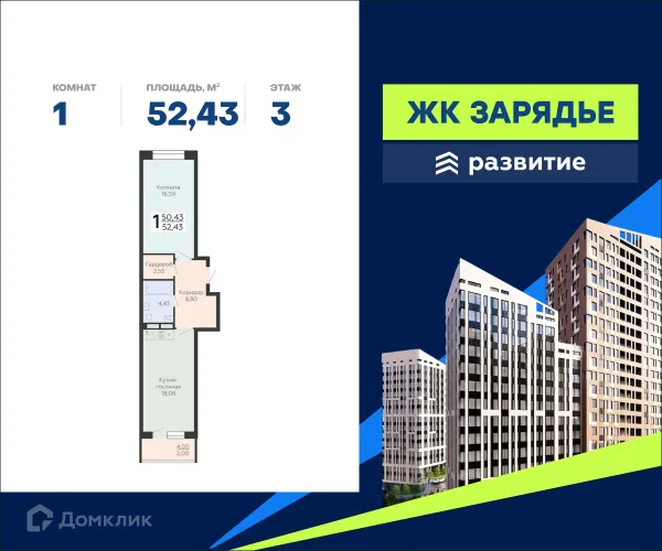 1 комн. квартира в Воронеже в ипотеку от 31 004 руб/месяц