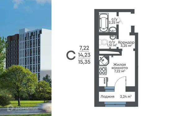 1 комн. квартира в Воронеже в ипотеку от 15 905 руб/месяц