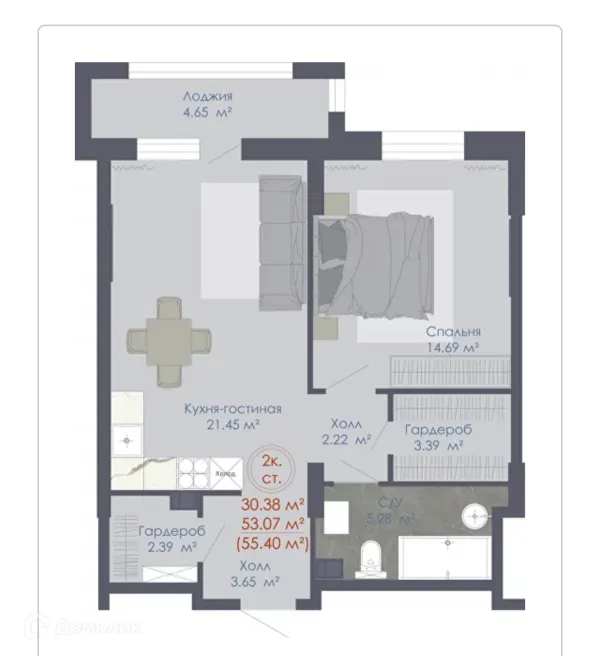 2 комн. квартира в Воронеже в ипотеку от 58 089 руб/месяц