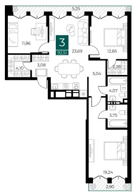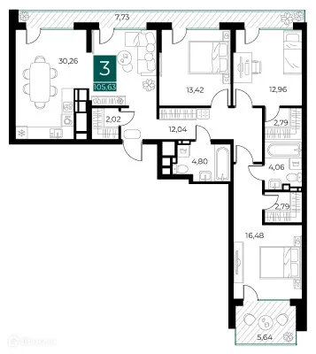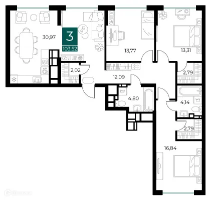 3 комн. квартира в Рязани в ипотеку от 129 902 руб/месяц