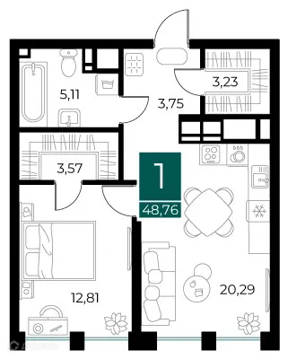 1 комн. квартира в Рязани в ипотеку от 66 713 руб/месяц