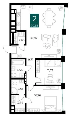 2 комн. квартира в Рязани в ипотеку от 80 489 руб/месяц