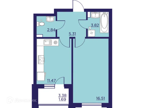 1 комн. квартира в Воронеже в ипотеку от 43 114 руб/месяц