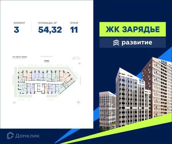 3 комн. квартира в Воронеже в ипотеку от 54 102 руб/месяц