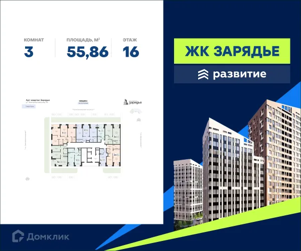 3 комн. квартира в Воронеже в ипотеку от 76 626 руб/месяц