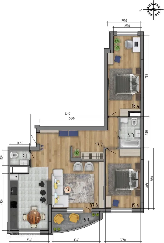 3 комн. квартира в Воронеже в ипотеку от 57 361 руб/месяц