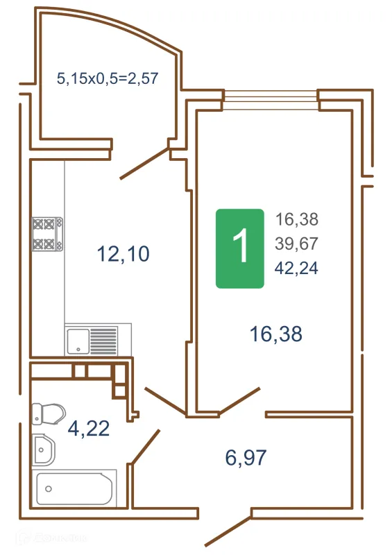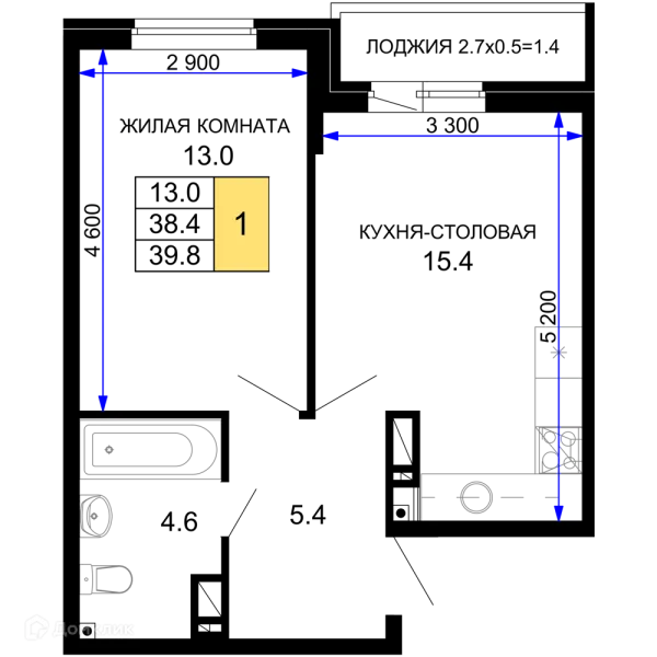 1 комн. квартира в Краснодаре в ипотеку от 45 611 руб/месяц
