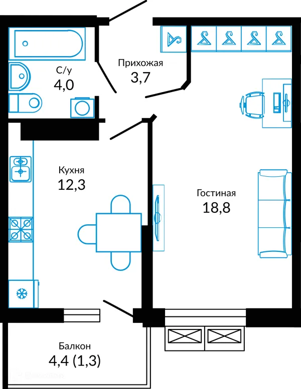 1 комн. квартира в Краснодаре в ипотеку от 44 311 руб/месяц