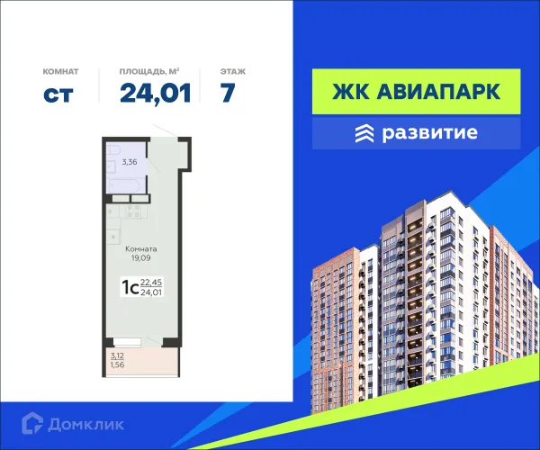 Студия квартира в Воронеже в ипотеку от 19 401 руб/месяц