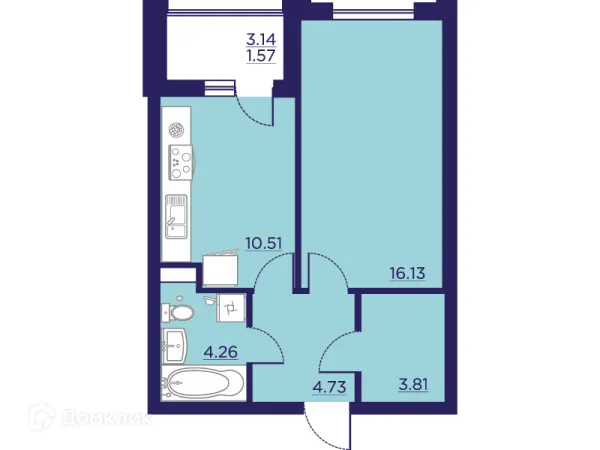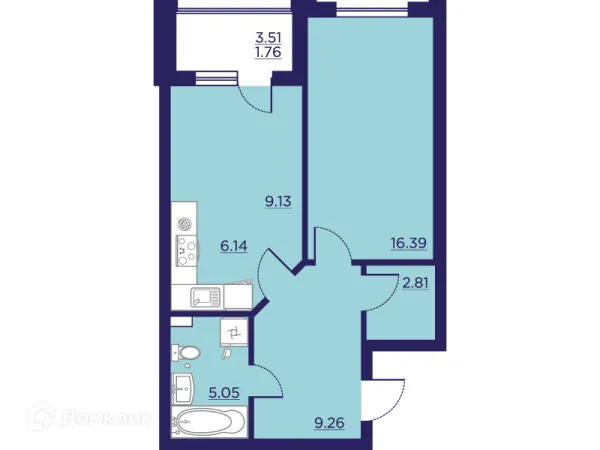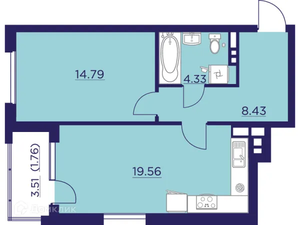 1 комн. квартира в Воронеже в ипотеку от 51 679 руб/месяц