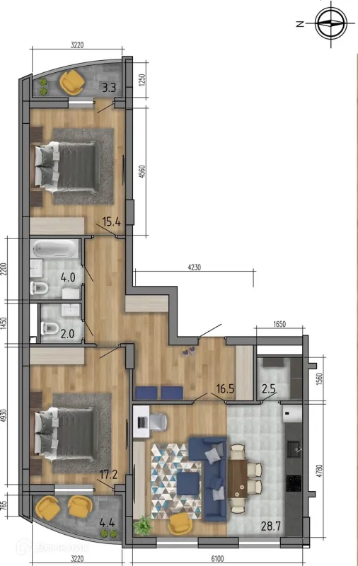3 комн. квартира в Воронеже в ипотеку от 75 897 руб/месяц