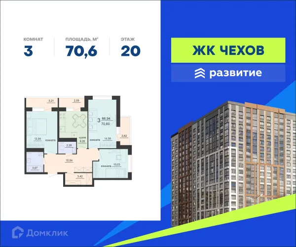 3 комн. квартира в Воронеже в ипотеку от 59 238 руб/месяц