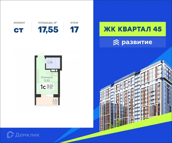 Студия квартира в Воронеже в ипотеку от 38 248 руб/месяц