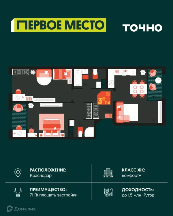 3 комн. квартира в Краснодаре в ипотеку от 69 835 руб/месяц