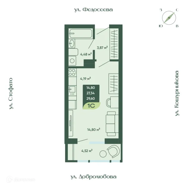 Студия квартира в Новосибирске в ипотеку от 29 524 руб/месяц