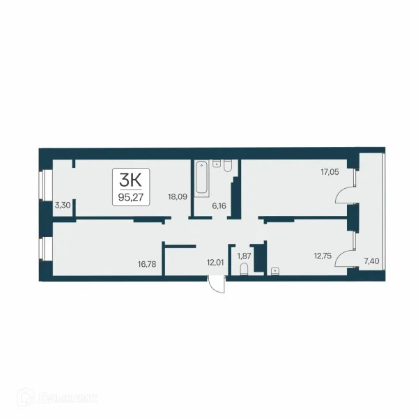 3 комн. квартира в Новосибирске в ипотеку от 73 378 руб/месяц