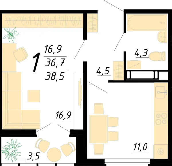 1 комн. квартира в Воронеже в ипотеку от 44 955 руб/месяц