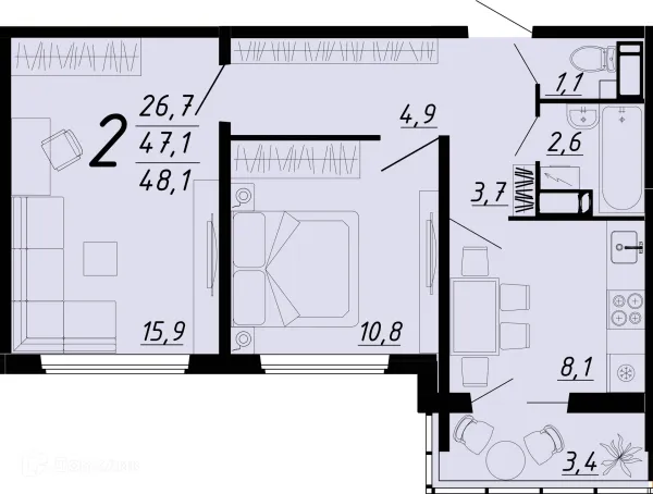 2 комн. квартира в Воронеже в ипотеку от 39 581 руб/месяц