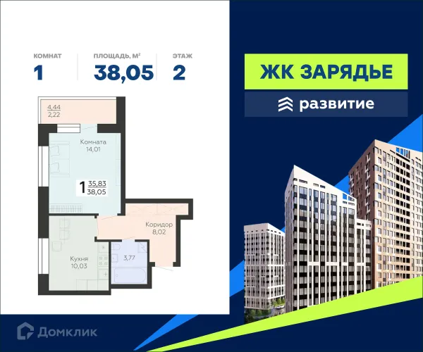 1 комн. квартира в Воронеже в ипотеку от 44 246 руб/месяц