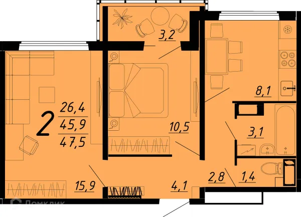 2 комн. квартира в Воронеже в ипотеку от 46 795 руб/месяц