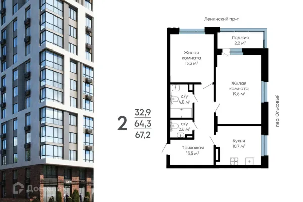 2 комн. квартира в Воронеже в ипотеку от 61 411 руб/месяц
