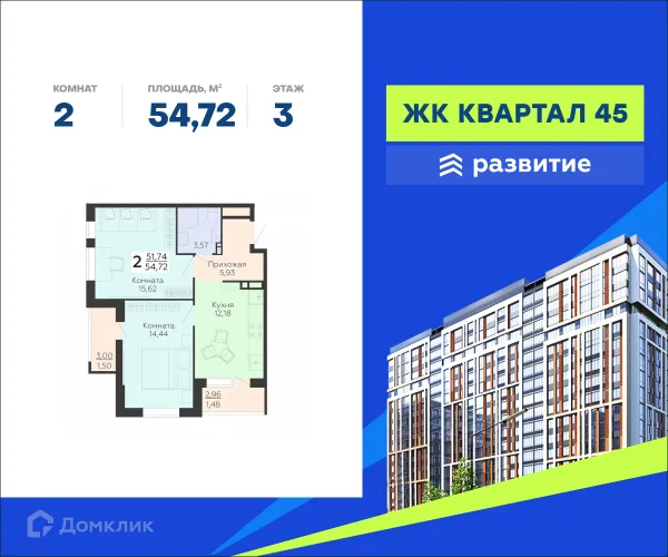 2 комн. квартира в Воронеже в ипотеку от 57 239 руб/месяц