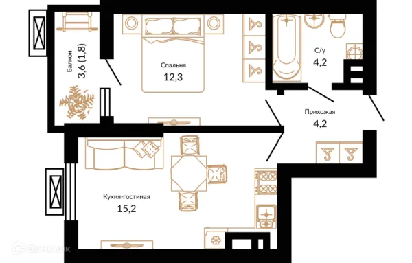 1 комн. квартира в Краснодаре в ипотеку от 52 429 руб/месяц
