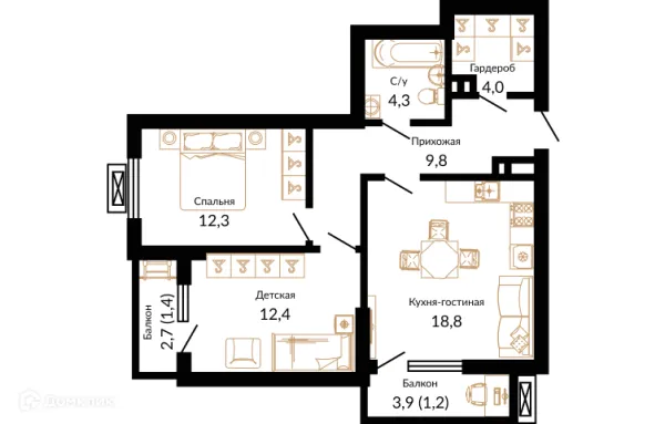 3 комн. квартира в Краснодаре в ипотеку от 84 101 руб/месяц